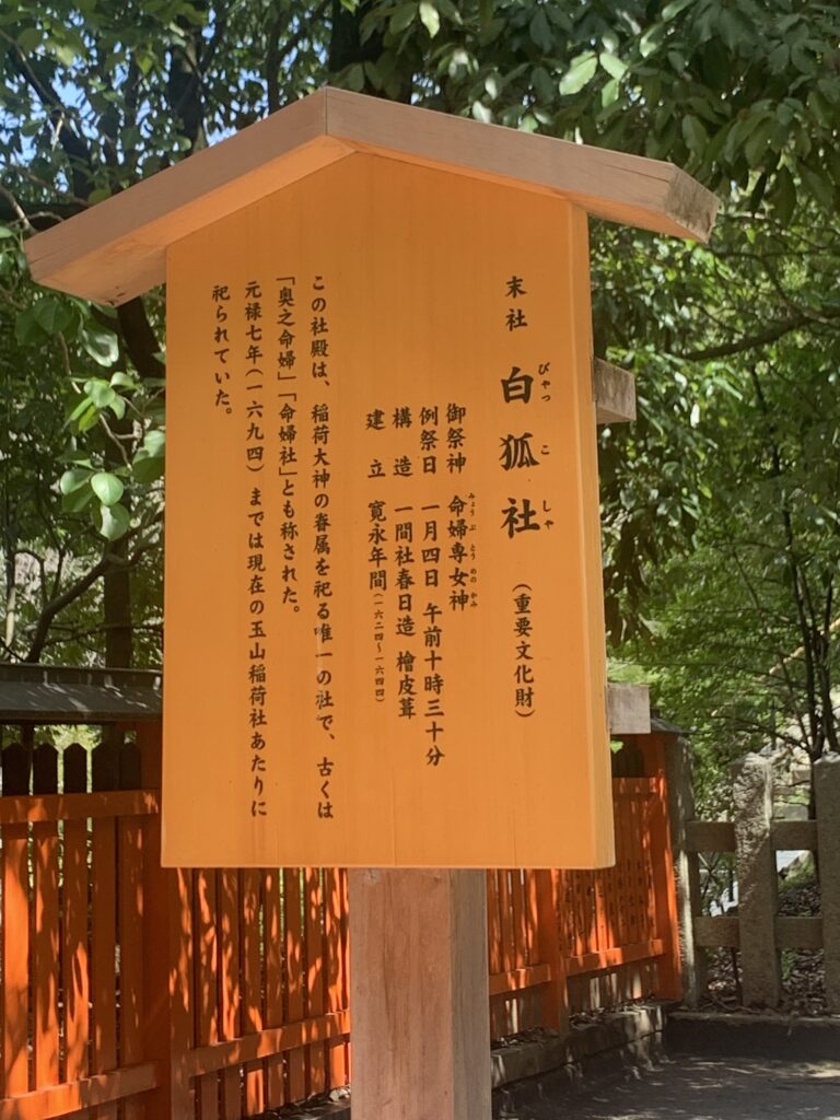 鳥居をくぐり本殿をお参りしたあと、右手にある、白狐社という、大層知恵があり命婦の位を授けられたと言う眷属さんのお社をお参りしてから、有名な千本鳥居に進みました。