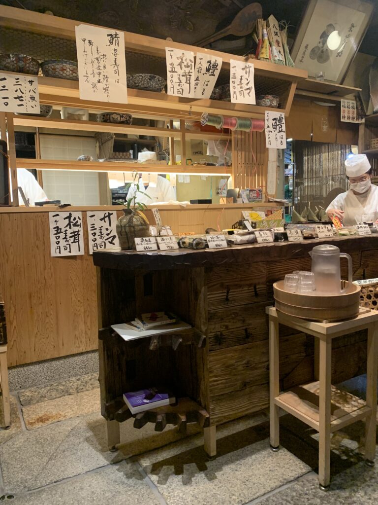 店内に入ると、こぢんまりとしたお店で入口にテイクアウトのお寿司が並んでいます。
