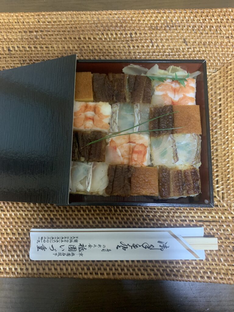 鰻の笹巻き寿しは帰りの車中で食べ、箱寿司は翌日の朝ご飯にしました。
