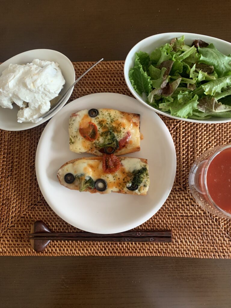 金曜日の帰りにドゥマゴで買ったタルティーヌで土曜日の朝ご飯にしました。